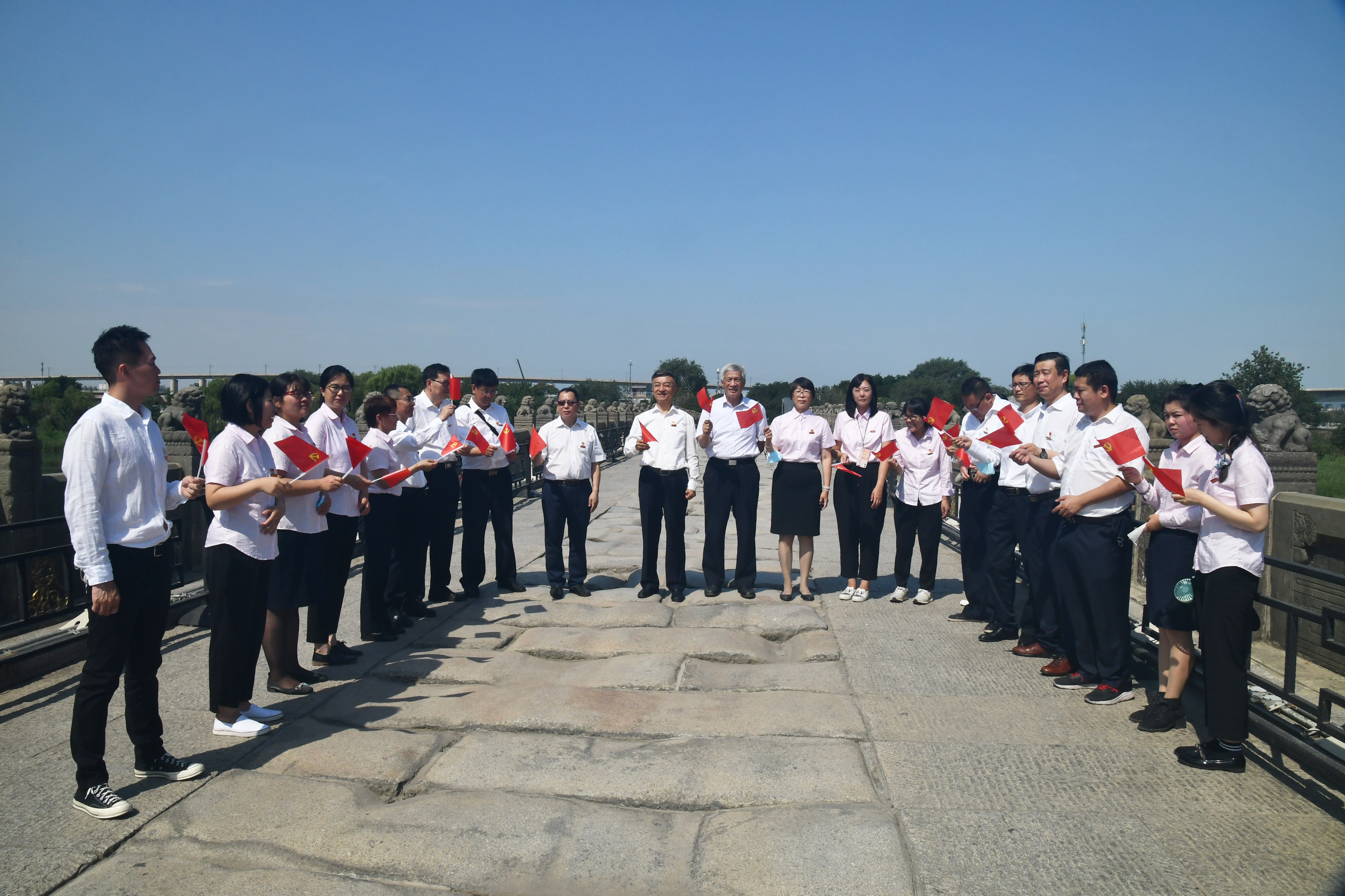 中国塑协党支部全体党员、秘书处全体工作人员在卢沟桥上唱红歌
