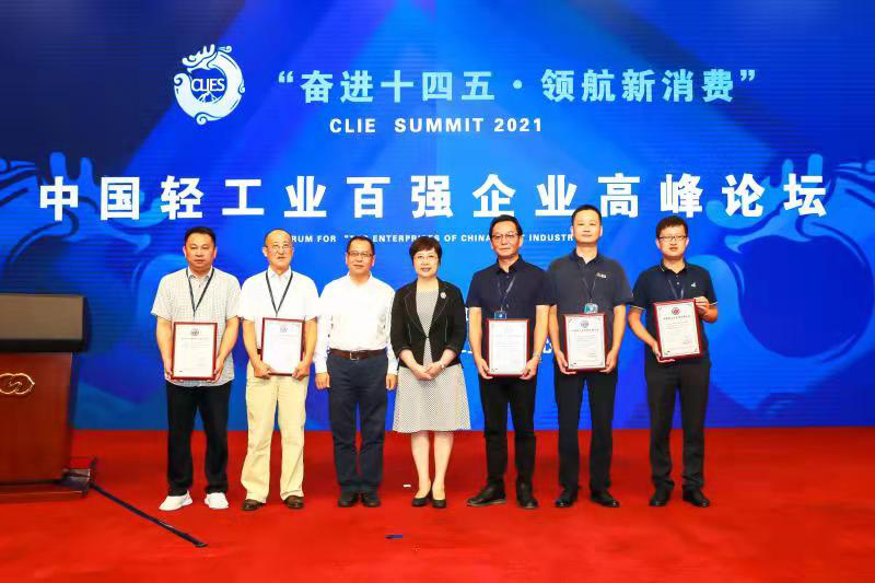 中国轻工业联合会于2021年7月20日在北京友谊宾馆隆重举办以“奋进十四五·领航新消费”为主题的的轻工业百强企业高峰论坛。大会发布了2020年度中国轻工业二百强企业、轻工业科技百强企业及轻工业装备五十强企业评价结果。中国轻工业联合会会长张崇和、国家有关部委领导向获奖单位代表授牌。高峰论坛由中国轻工业联合会副会长何烨主持。中国塑协王占杰副理事长兼秘书长参加会议。