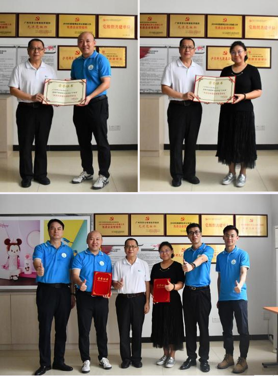 在新力公司,王占杰副理事长兼秘书长还为广州市新力实业有限公司现场颁发了中国塑料加工行业“十三五”科技创新型优秀会员和塑料加工行业“十三五”先进科技工作者证书,为广州市振兴实业有限公司颁发中国塑料加工行业“十三五”科技创新型优秀会员证书,以表彰两家企业在“十三五”期间做出的贡献。