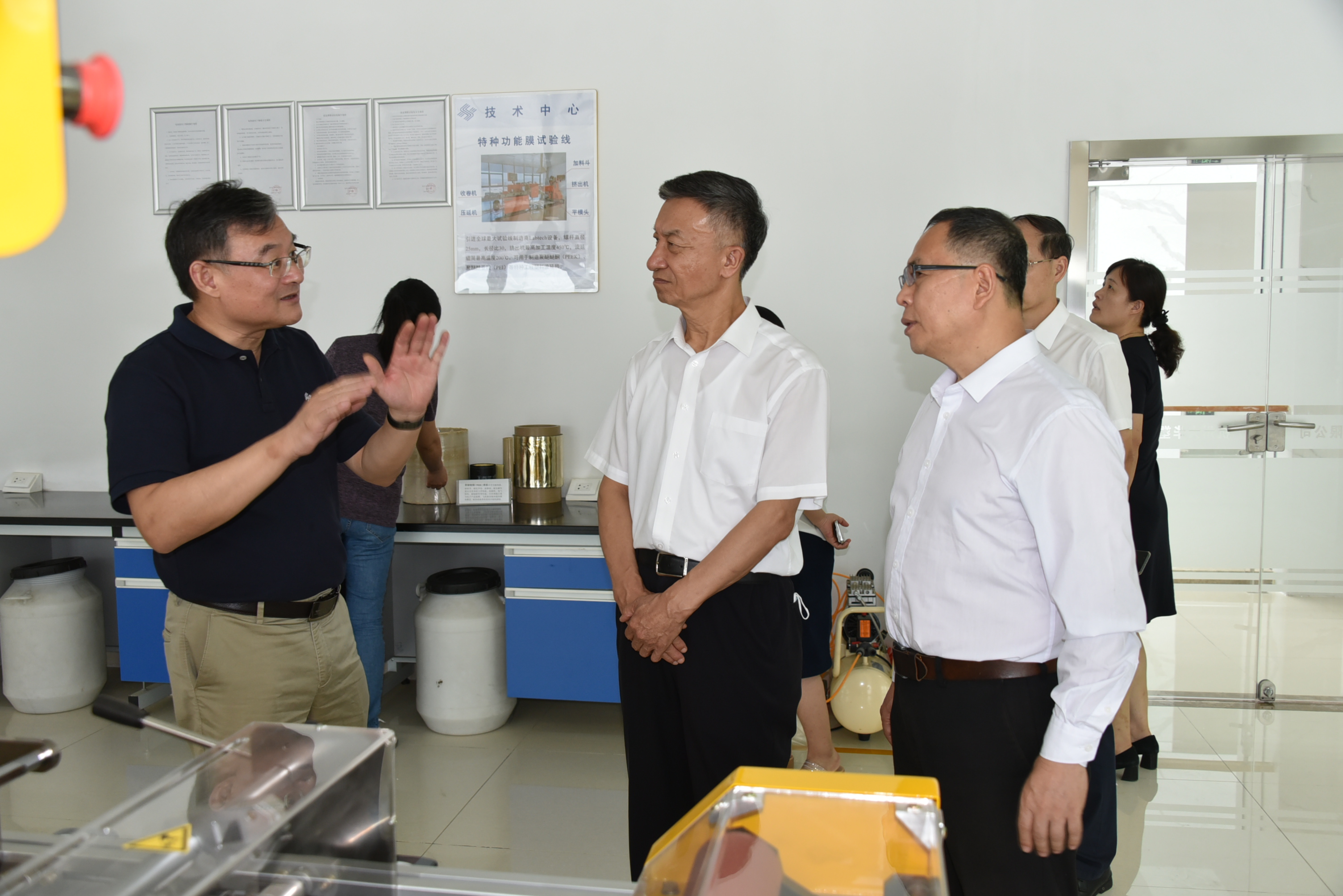 座谈交流中,董事长兼总经理孙江华详细介绍了公司运营、新品研发、技术改造和技术创新工作成绩和经验;反映了目前拉闸限电给企业带来的影响,聚酯薄膜生产线需连续化生产,每次启动设备将产生更多的电能浪费及原料浪费,还将影响产品质量,希望能够根据不同行业实际情况,合理实施限电措施。