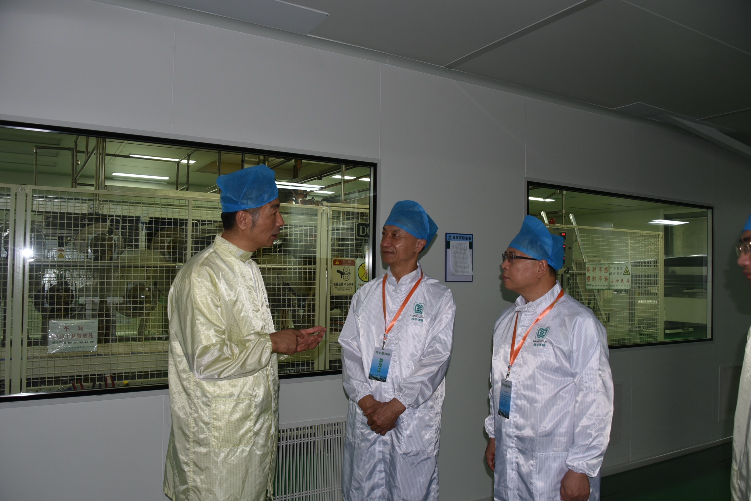在浙江华天实业有限公司董事长马仕秀、总经理马越波、绍兴翔宇绿色包装有限公司马力及浙江强盟股份有限公司董事长、中国塑协BOPET专委会主任易志龙、副秘书长夏冶等陪同下,朱文玮理事长一行参观了公司生产车间,了解公司生产经营、设备和生产线、产品与技术创新情况等。