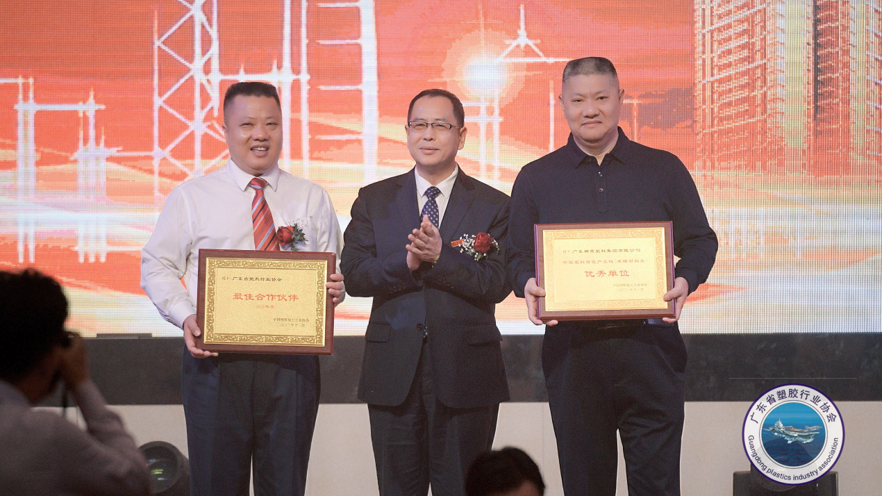他还对广东省塑胶行业协会在产业集群的工作、对有关“中国塑料新材料之都·常平”的申报及复审工作尽心尽力,注重行业服务予以赞扬,表示将继续支持,共同为中国塑料行业更好发展贡献力量。会议中,王占杰理事长还代表中国塑料加工工业协会,向广东省塑胶行业协会颁发了最佳合作伙伴牌匾,向广东神鹰塑料集团有限公司颁发了中国塑料绿色产业链优秀单位牌匾。