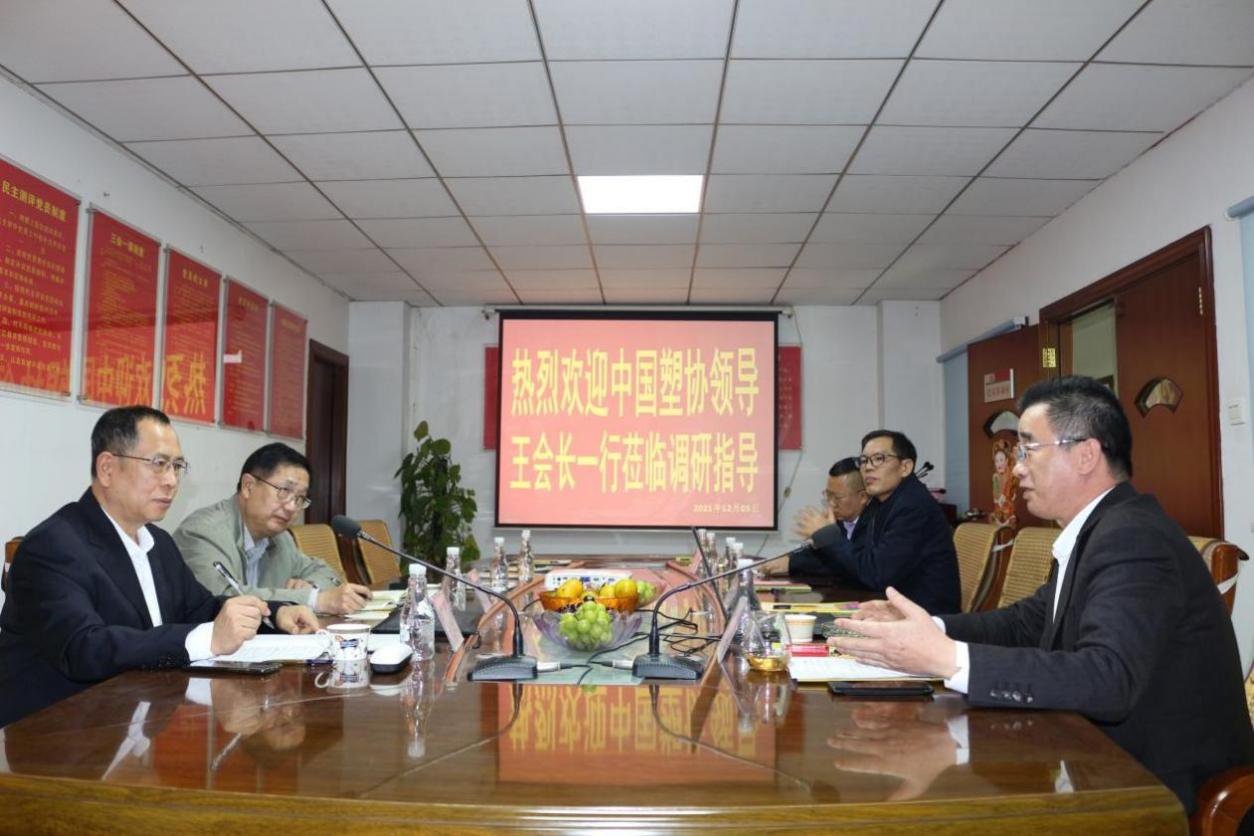 2021年12月5日下午,中国塑料加工工业协会理事长王占杰、副理事长王磊光到中国塑协多功能母料专委会主任单位、广东彩虹德记塑胶颜料股份有限公司调研考察。中国塑协多功能母料专委会主任、广东彩虹德记塑胶颜料股份有限公司董事长季德虎、副董事长刘燕等热情接待并陪同调研。