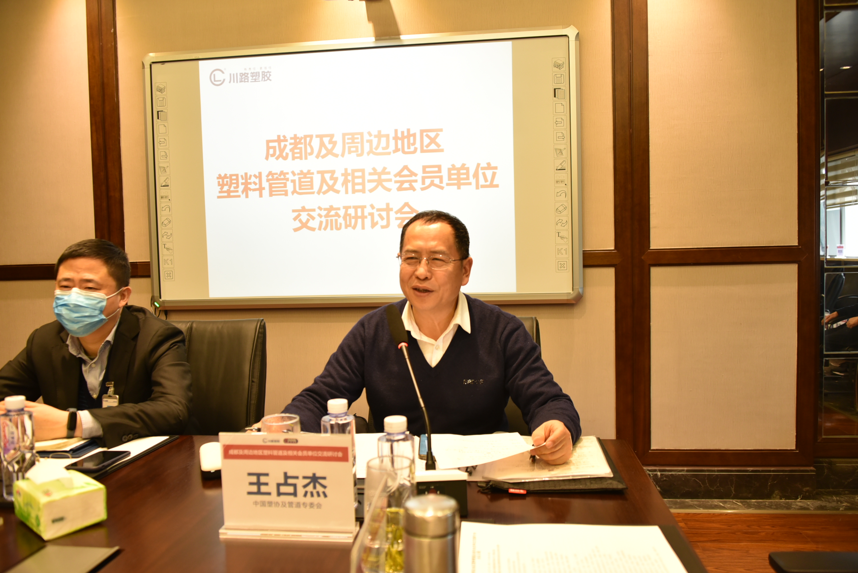 2021年12月13日下午,中国塑料加工工业协会及中国塑协塑料管道专委会在成都川路塑胶集团有限公司召开了“成都及周边地区塑料管道及相关会员单位交流研讨会”。中国塑料加工工业协会理事长王占杰、副理事长田岩、秘书长焦红文出席研讨会。