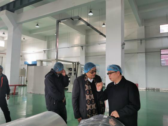 在江苏彩华包装集团有限公司,夏嘉良董事长、夏瑜总经理等陪同王占杰理事长参观了公司的功能膜生产车间。