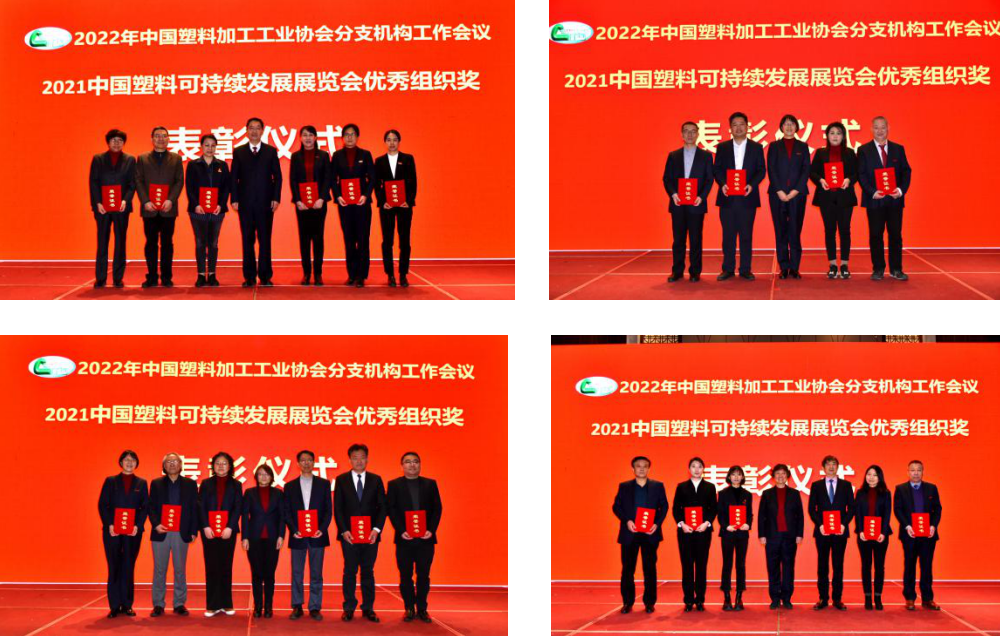 班子其他领导还对获得2021中国塑料可持续发展展览会分支机构优秀组织奖的24家分支机构颁发证书。