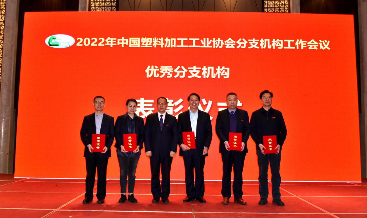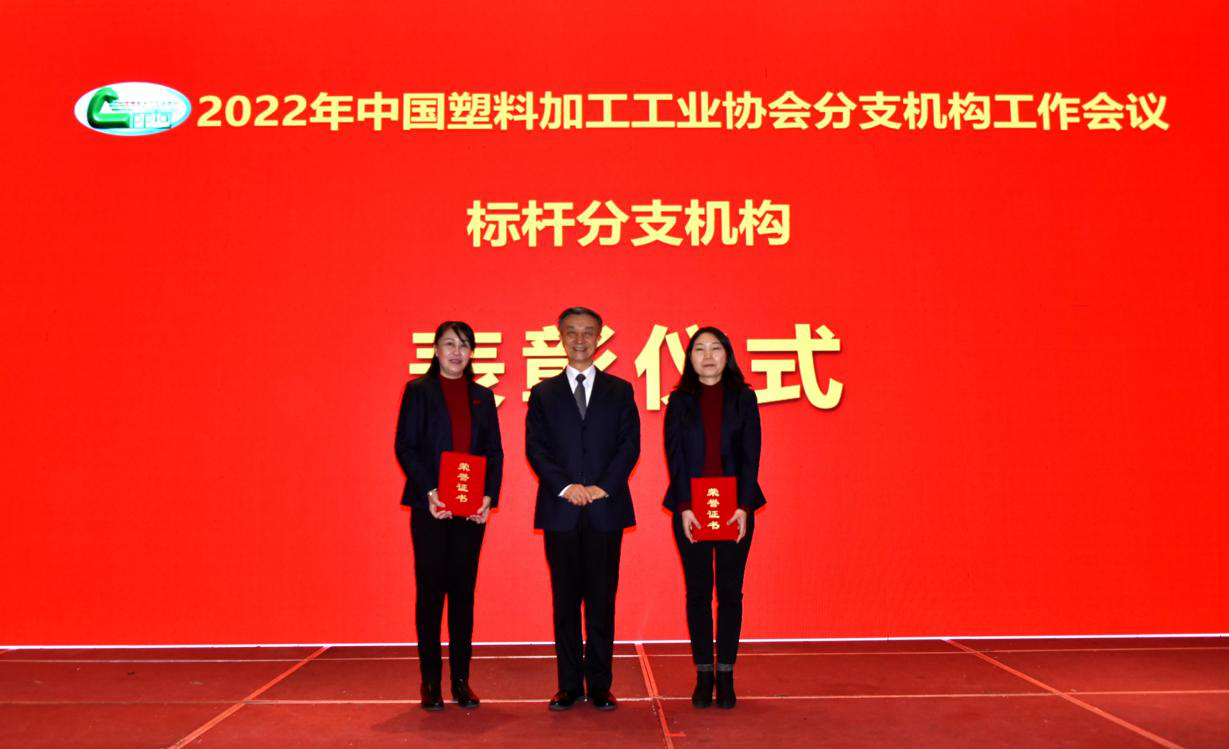 按照议程安排,首先由江桂兰监事长宣读了《关于表彰2021年度标杆分支机构、主任、秘书长和优秀分支机构、主任、秘书长的决定》,为表彰分支机构在行业发展和协会工作中做出的突出成绩,决定授予塑料家居用品、塑料管道、农用薄膜等三个分支机构为2021年度中国塑料加工工业协会标杆分支机构;宋旭彬、张建均、曹志强等三名同志为标杆分支机构主任;梁家杰、赵艳、刘敏等三名同志为标杆分支机构秘书长;双向拉伸聚酯薄(BOPET)膜、复合膜制品、降解塑料、塑料编织制品、硬质PVC发泡制品等五个分支机构为2021年度中国塑料加工工业协会优秀分支机构;易志龙、夏嘉良、黄志刚、王学宝、孙锋等五名同志为优秀分支机构主任,徐志强、高学文、翁云宣、赵克武、周家华、夏冶等六名同志为优秀分支机构秘书长,朱文玮荣誉理事长和王占杰理事长分别为获奖分支机构和相关人员颁发证书。