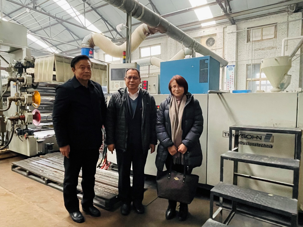 在济南海富塑胶有限公司董事长仇法新的陪同下,调研组一行参观了公司的生产车间、产品研发中心。仇法新董事长详细介绍了公司的发展历程、产品研发及经营现状等情况。参观过程中还着重介绍了20年前从德国 、奥地利进口机械设备。作为国内较早一批中美合资企业,海富塑胶在引进国外先进技术及理念的基础上,利用自身优势,坚持开展自主设计研发,精益求精提升产品质量,生产特种产品,抢占国际市场,老企开新芽,释放新活力。