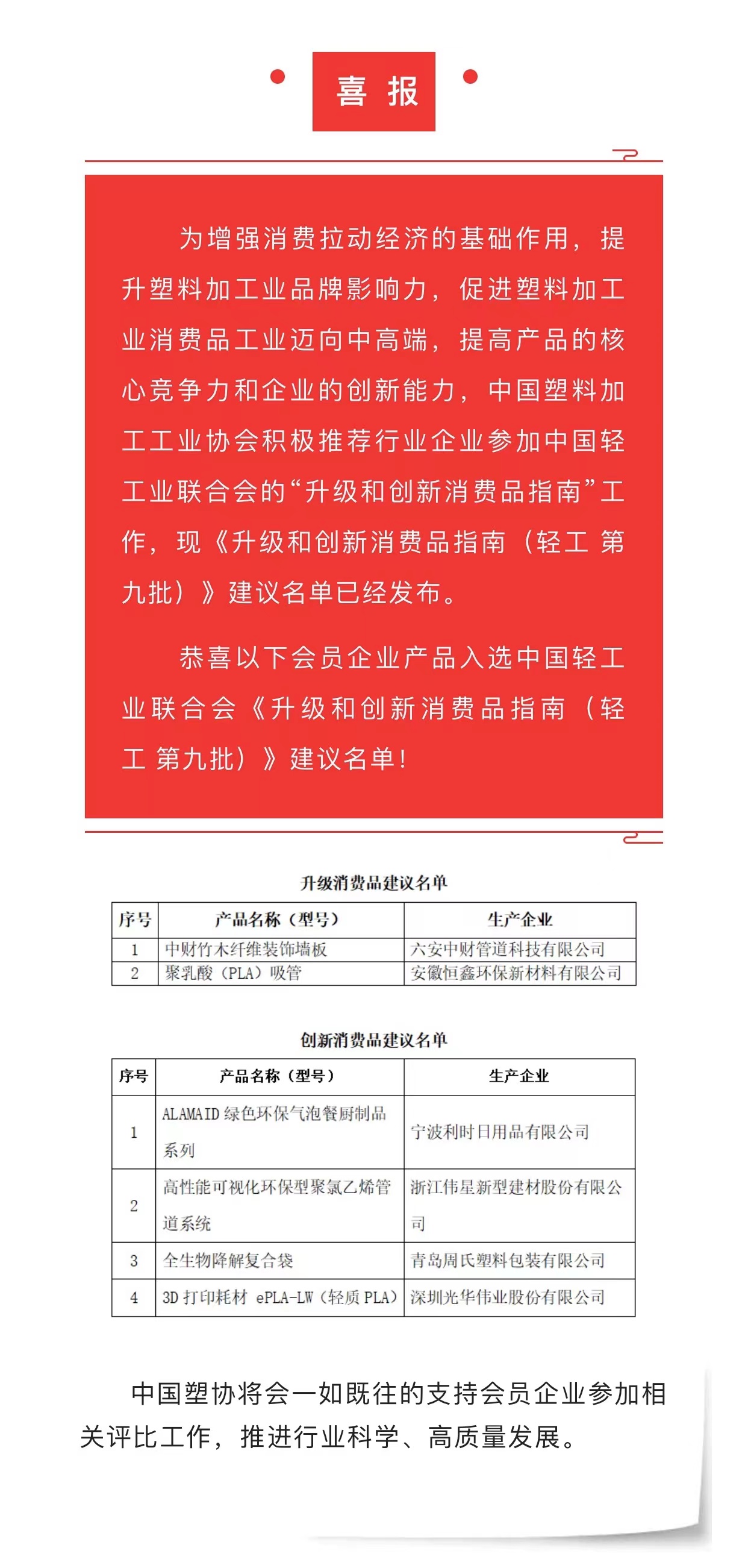 喜报 | 《升级和创新消费品指南(轻工 第九批)》建议名单发布!