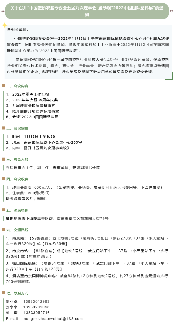 会议 | 关于召开“中国塑协农膜专委会五届九次理事会”暨参观“2022中国国际塑料展”的通知