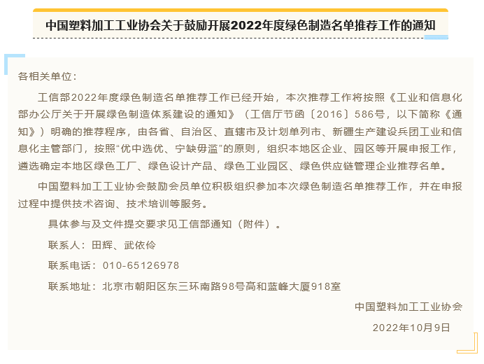 关于鼓励开展2022年度绿色制造名单推荐工作的通知