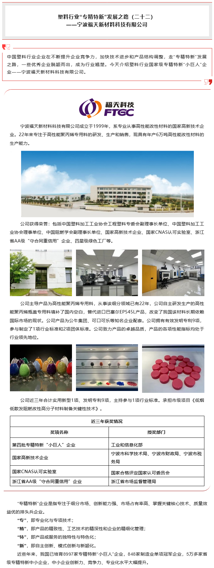 塑料行业“专精特新”发展之路(二十二)—— 宁波福天新材料科技有限公司