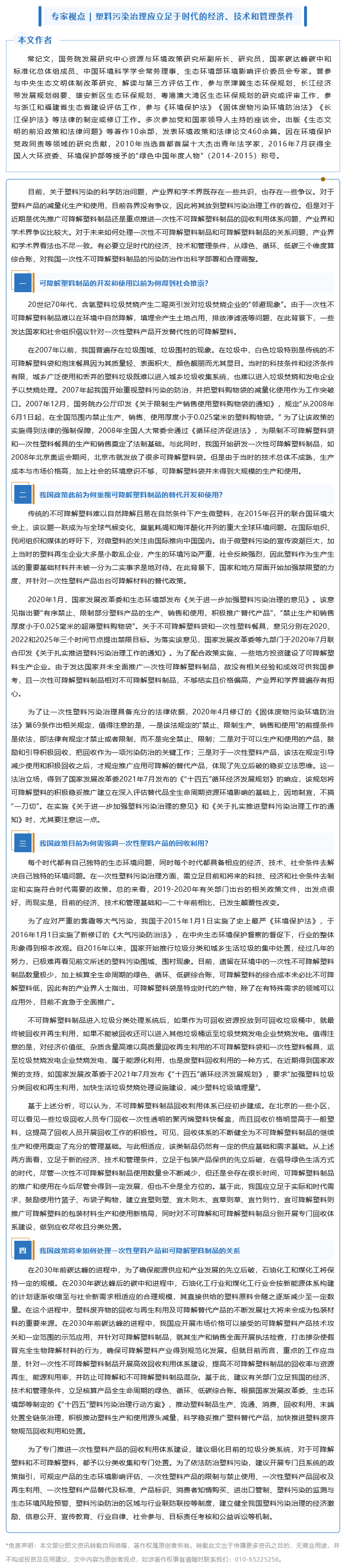 专家视点 | 塑料污染治理应立足于时代的经济、技术和管理条件