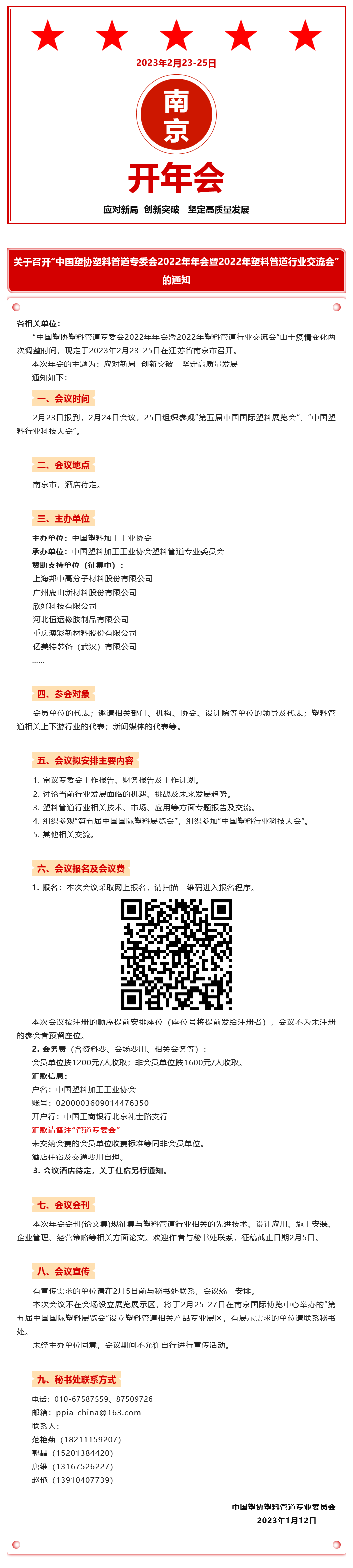 会议 | 关于召开“中国塑协塑料管道专委会2022年年会暨2022年塑料管道行业交流会”的通知