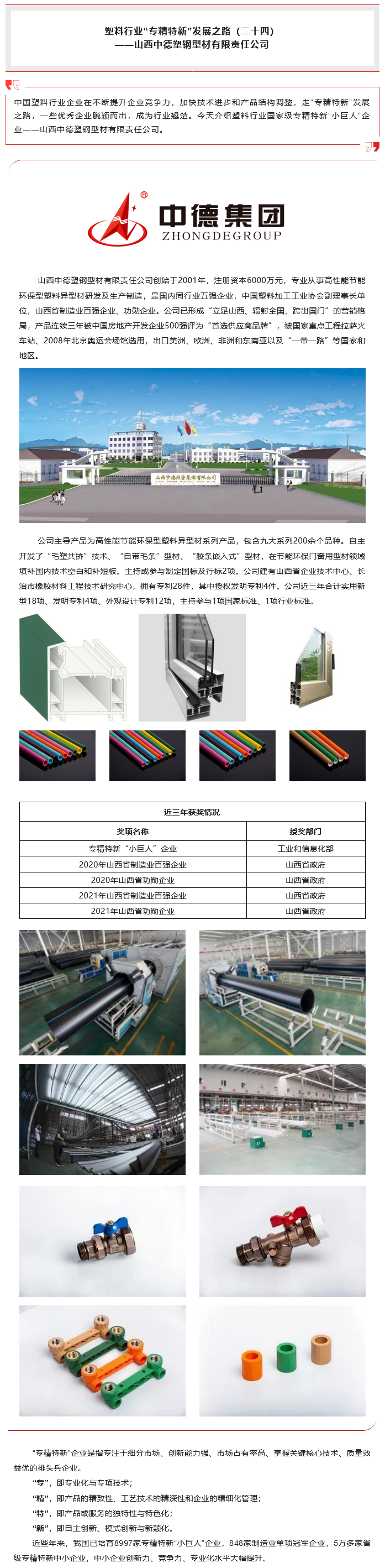 塑料行业“专精特新”发展之路(二十四)—— 山西中德塑钢型材有限责任公司