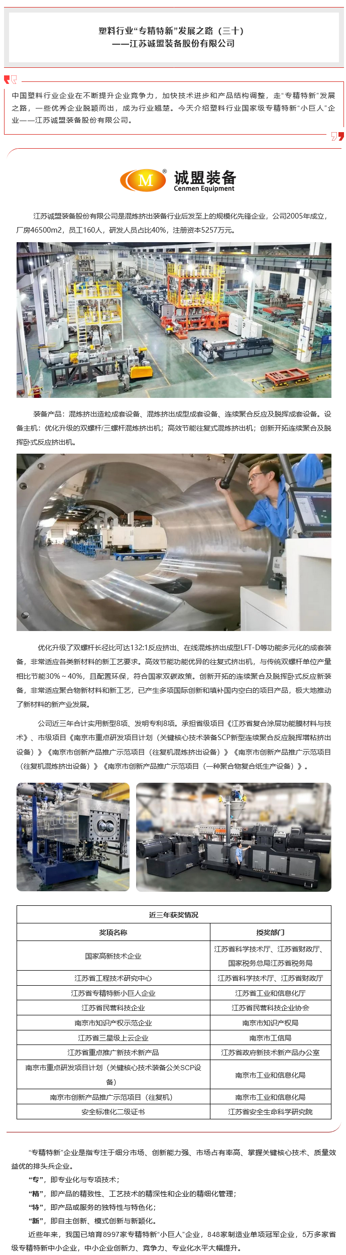 塑料行业“专精特新”发展之路(三十)—— 江苏诚盟装备股份有限公司
