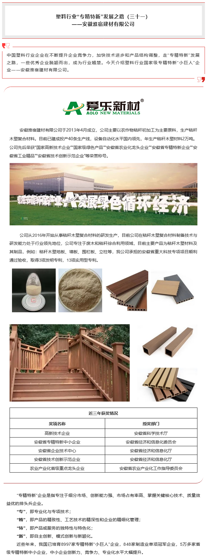 塑料行业“专精特新”发展之路(三十一)—— 安徽淮宿建材有限公司