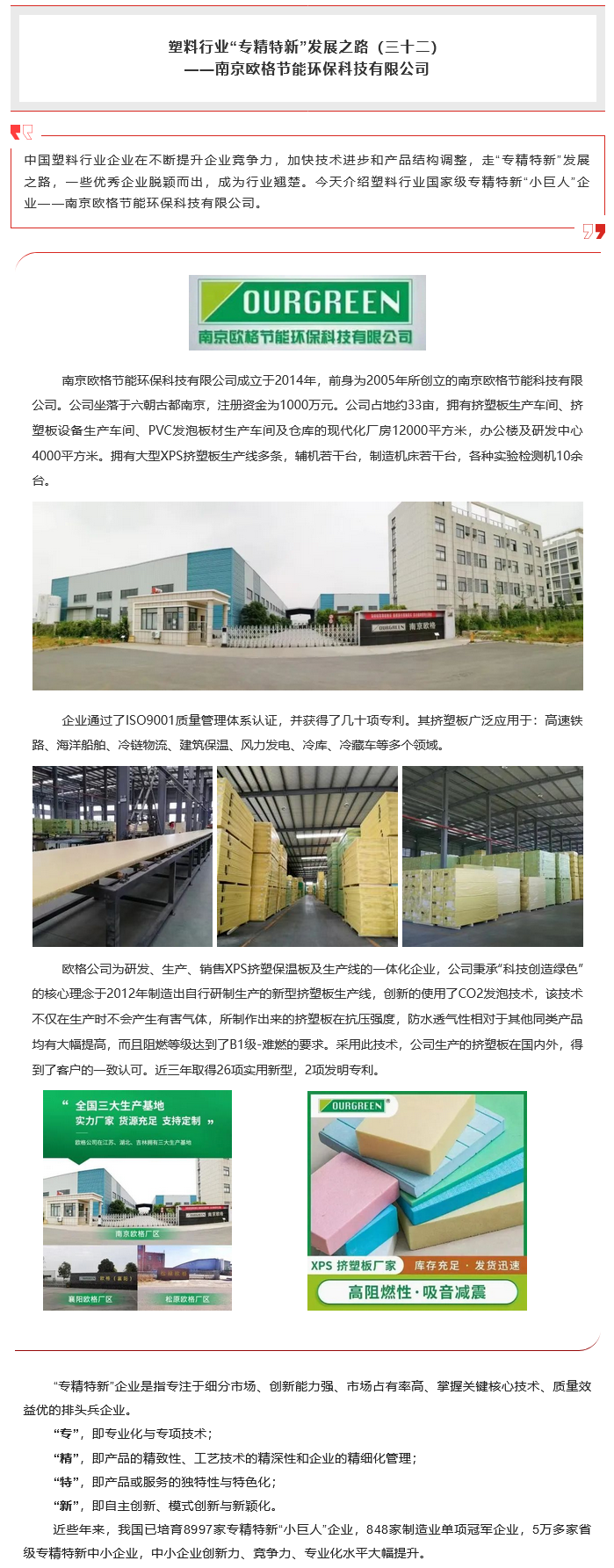 塑料行业“专精特新”发展之路(三十二)—— 南京欧格节能环保科技有限公司