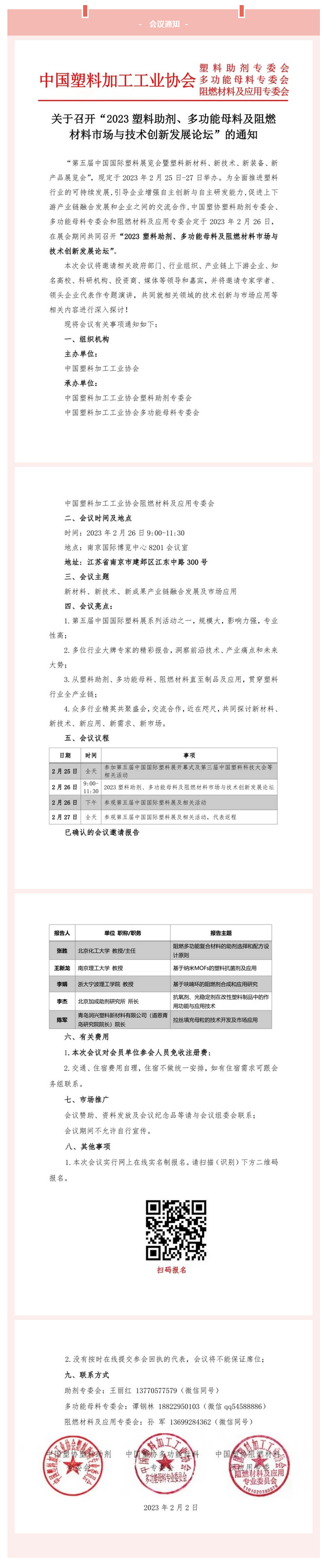 会议 | 关于召开“2023塑料助剂、多功能母料及阻燃材料市场与技术创新发展论坛”的通知