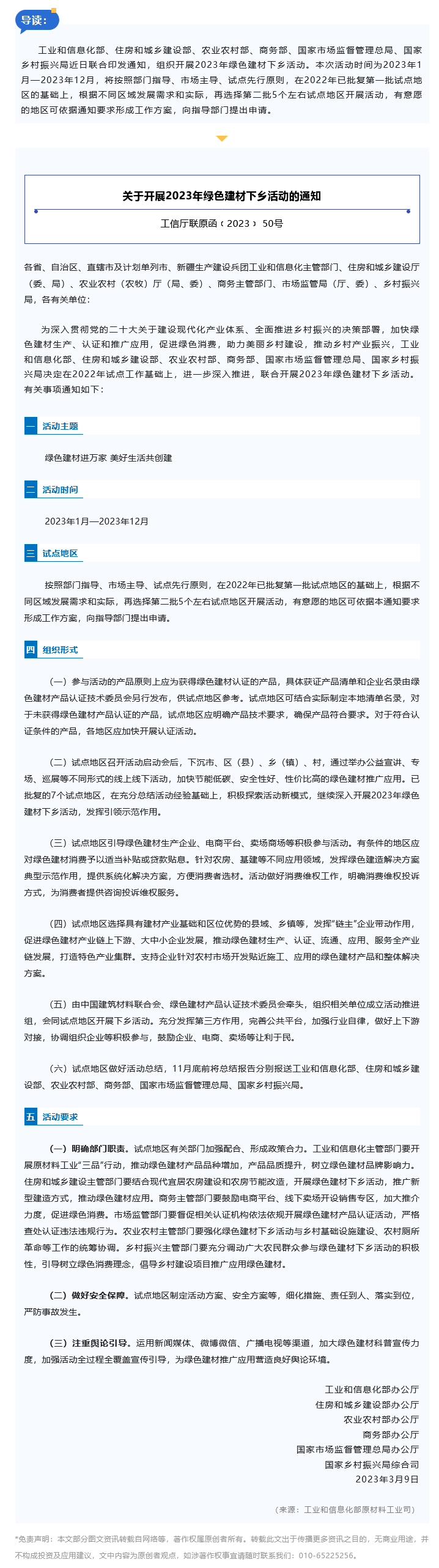 行业快讯 | 工信部等六部门组织开展2023年绿色建材下乡活动