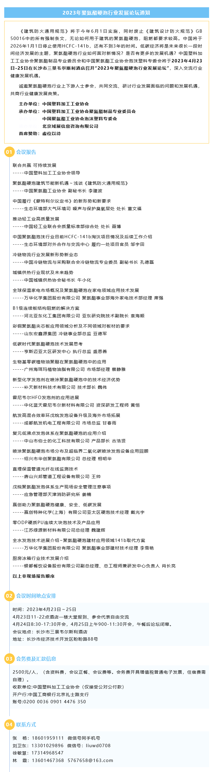 会议 | 2023年聚氨酯硬泡行业发展论坛通知