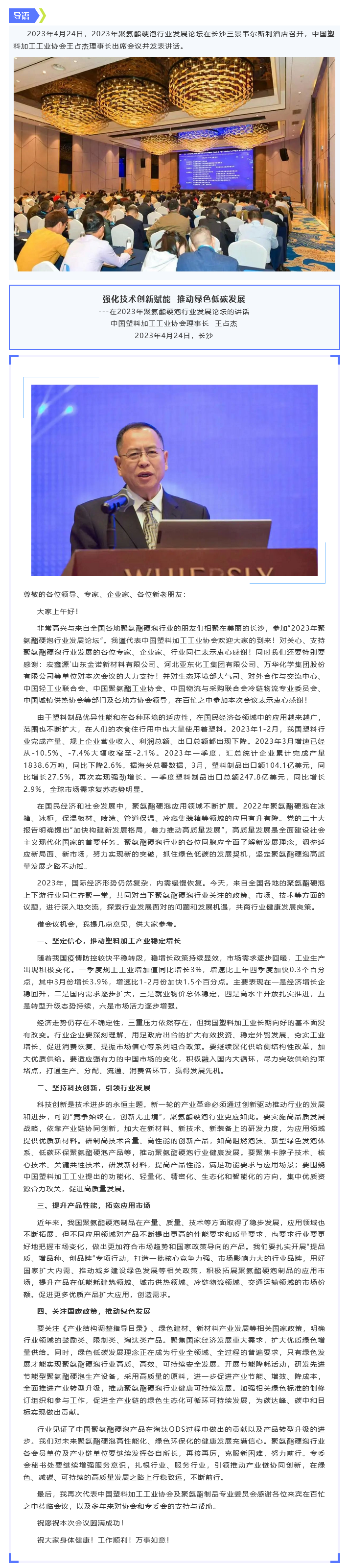 王占杰理事长在2023年聚氨酯硬泡行业发展论坛的讲话