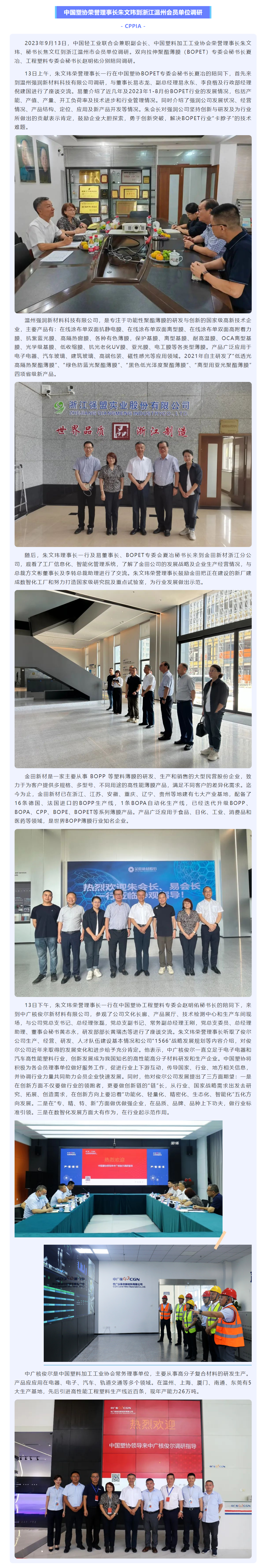 中国塑协荣誉理事长朱文玮到浙江温州会员单位调研