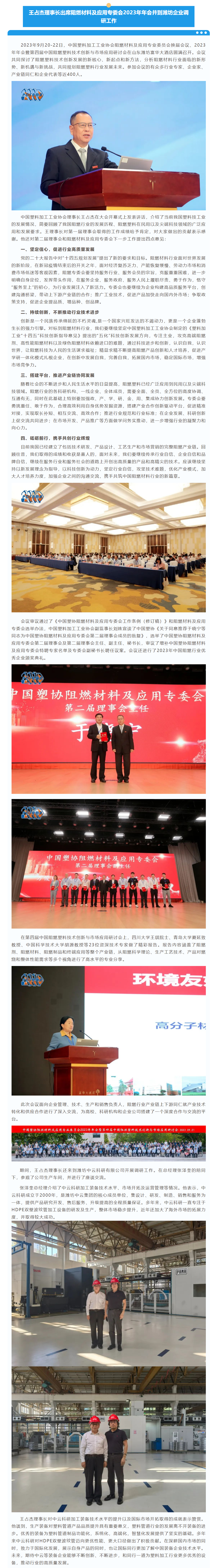 王占杰理事长出席阻燃材料及应用专委会2023年年会并到潍坊企业调研工作