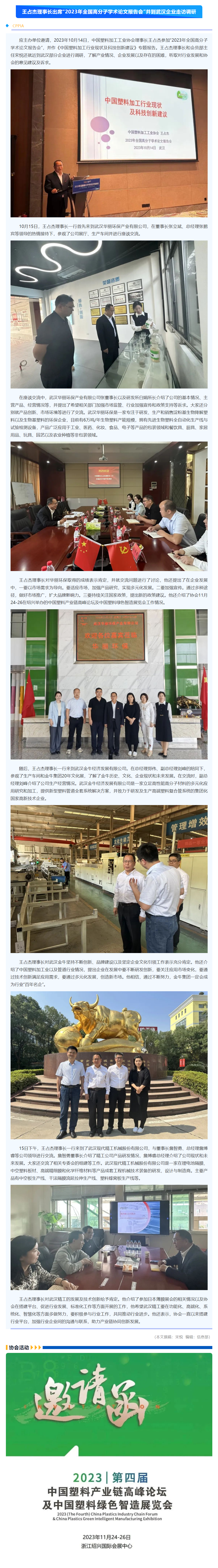王占杰理事长出席“2023年全国高分子学术论文报告会”并到武汉企业走访调研