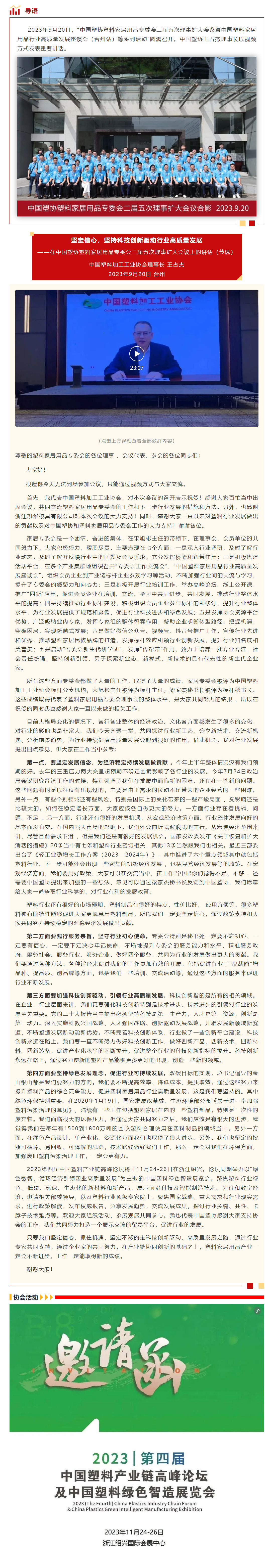 王占杰理事长在中国塑协塑料家居用品专委会二届五次理事扩大会议上的讲话