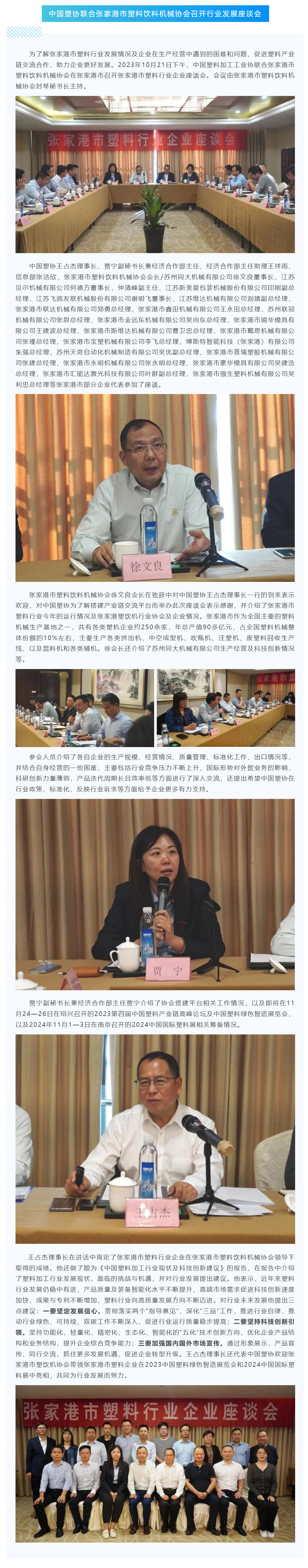 中国塑协联合张家港市塑料饮料机械协会召开行业发展座谈会