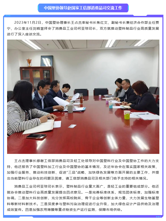 中国塑协领导赴国家工信部消费品司交流工作
