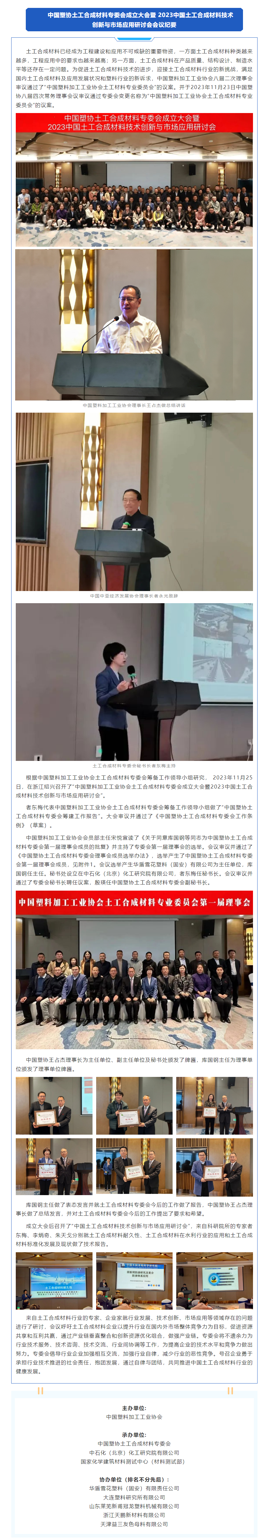 中国塑协土工合成材料专委会成立大会暨 2023中国土工合成材料技术创新与市场应用研讨会会议纪要