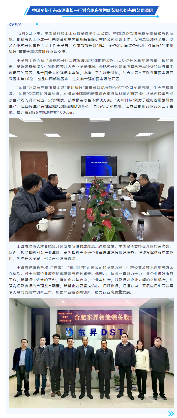 王占杰理事长一行到合肥东昇智能装备股份有限公司调研