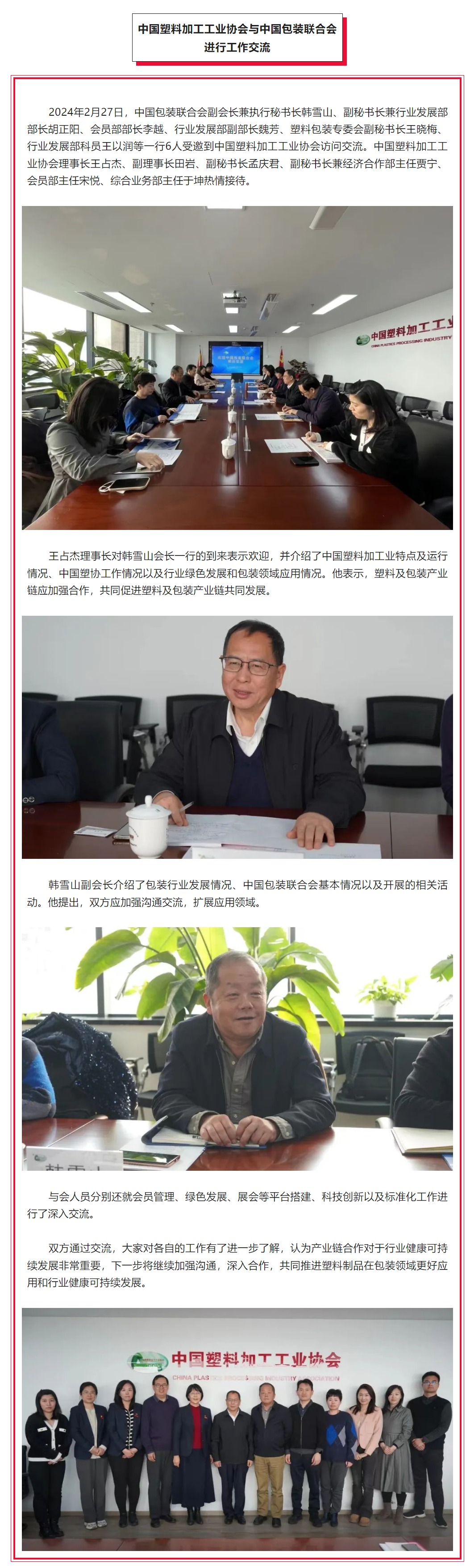 中国塑料加工工业协会与中国包装联合会进行工作交流