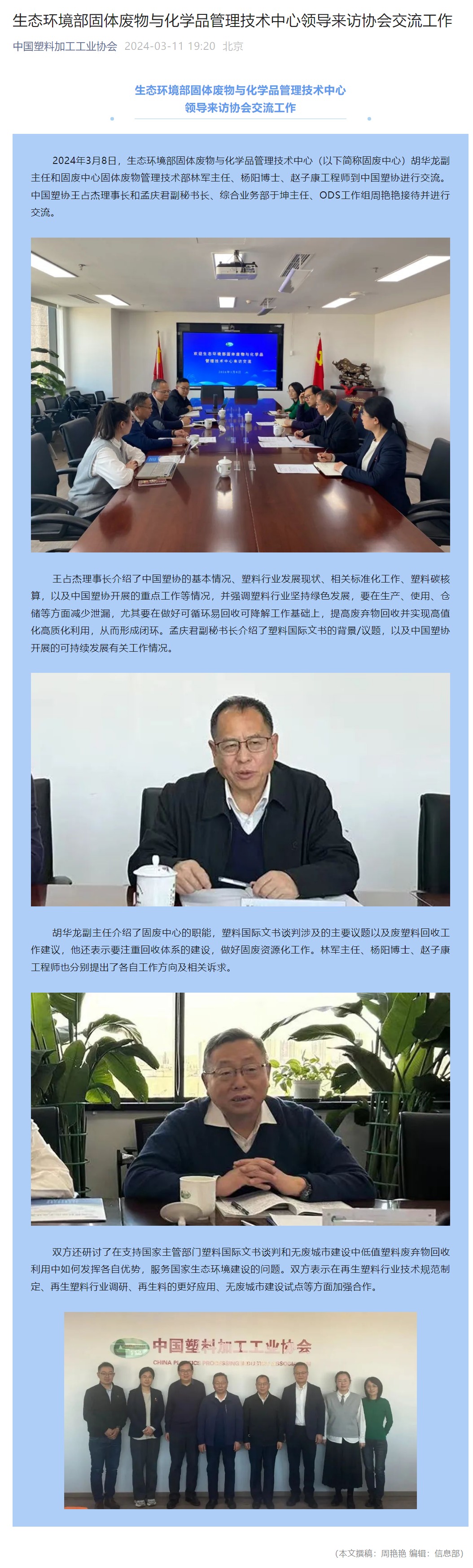 生态环境部固体废物与化学品管理技术中心领导来访协会交流工作
