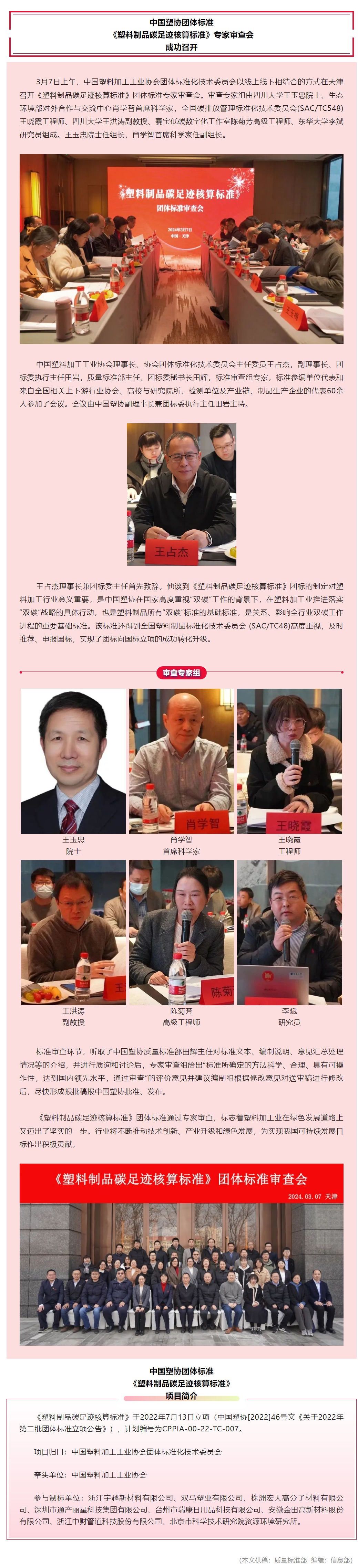 中国塑协团体标准《塑料制品碳足迹核算标准》专家审查会成功召开