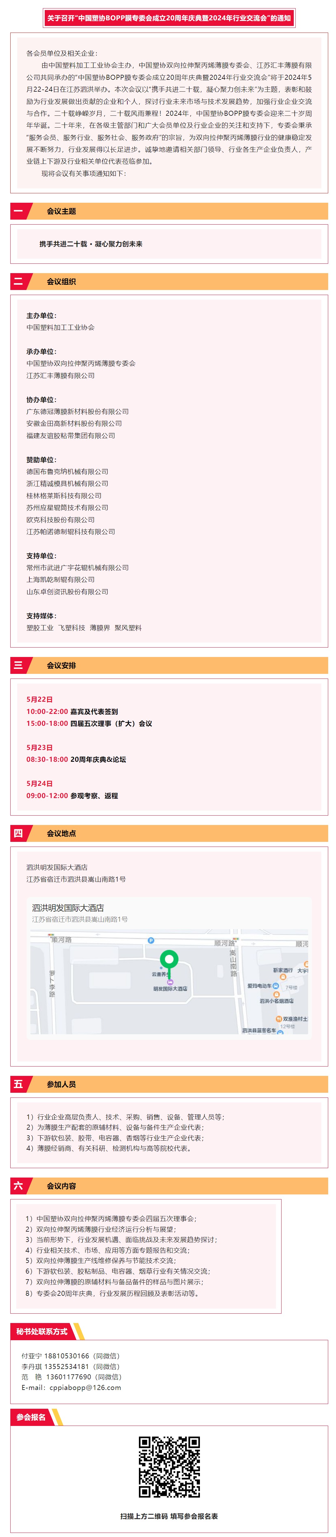 关于召开“中国塑协BOPP膜专委会成立20周年庆典暨2024年行业交流会”的通知