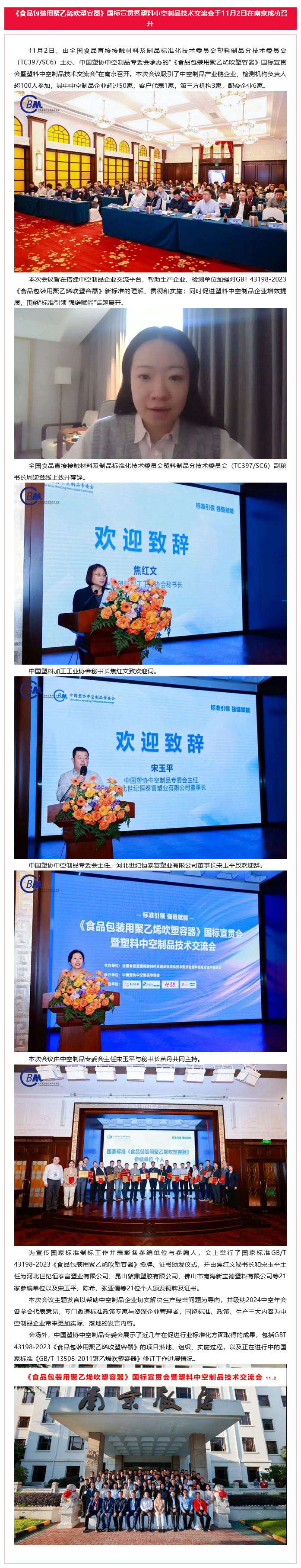 精彩回顾 | 《食品包装用聚乙烯吹塑容器》国标宣贯暨塑料中空制品技术交流会于11月2日在南京成功召开