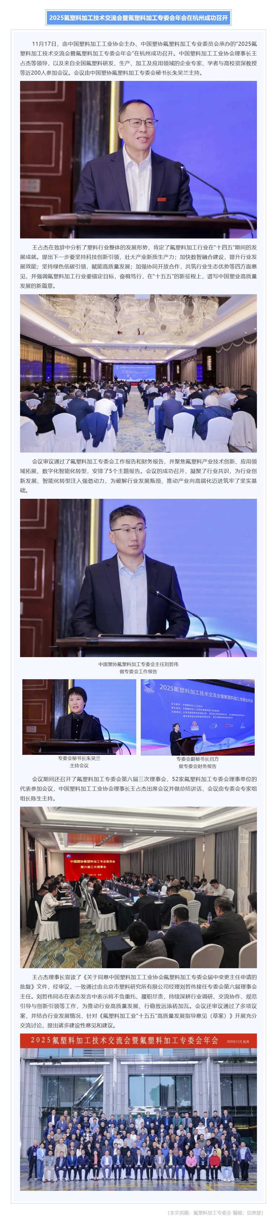 2025氟塑料加工技术交流会暨氟塑料加工专委会年会在杭州成功召开