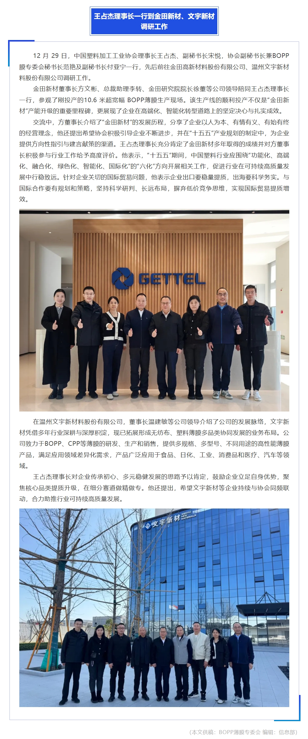 王占杰理事长一行到金田新材、文宇新材调研工作