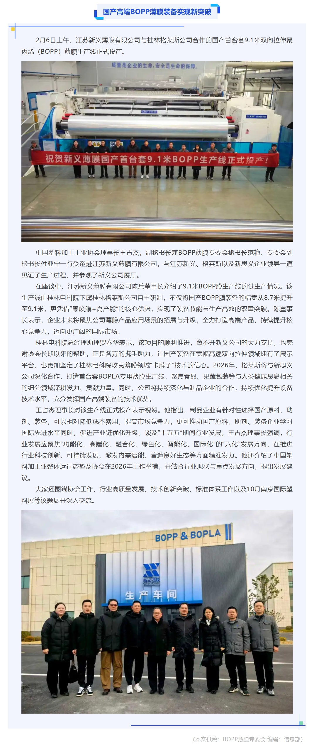 国产高端BOPP薄膜装备实现新突破