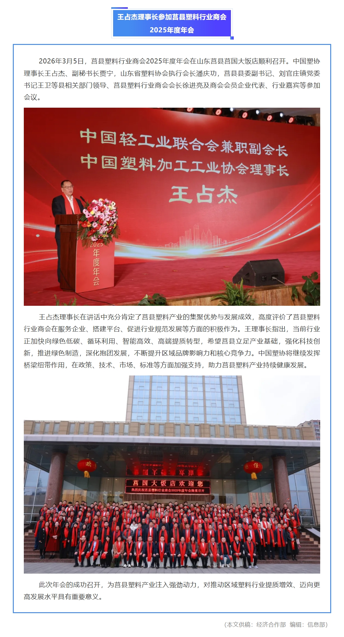 王占杰理事长参加莒县塑料行业商会2025年度年会