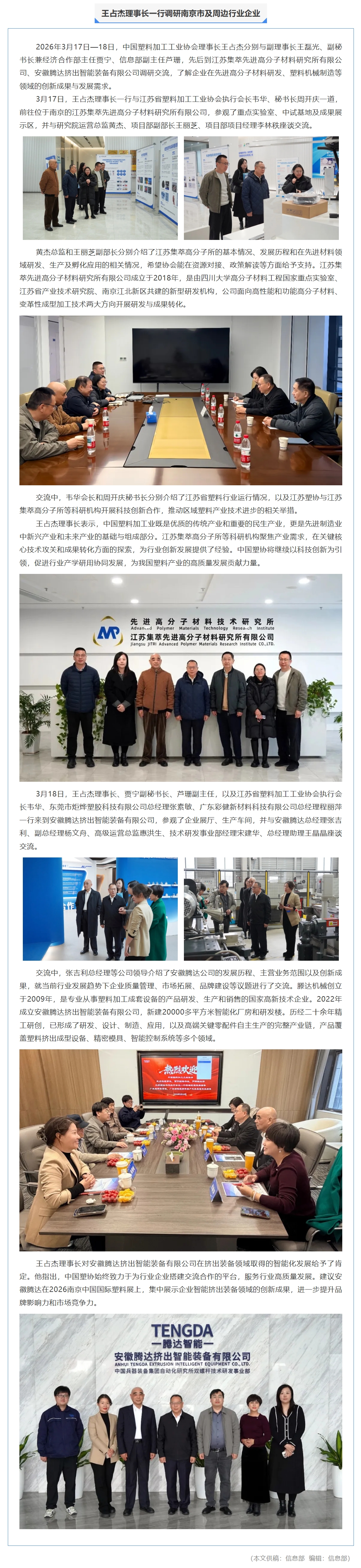 王占杰理事长一行调研南京市及周边行业企业